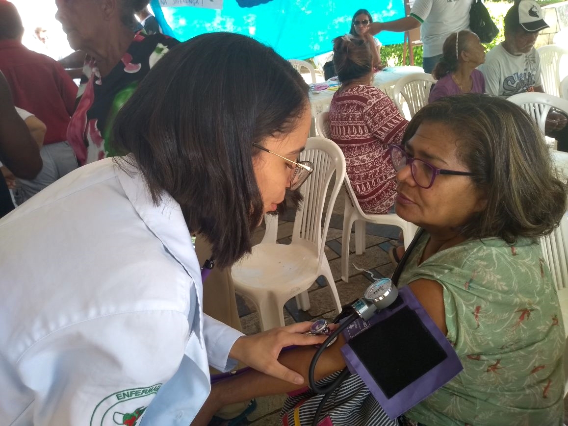 Participaram da ação estudantes dos cursos de Fisioterapia, Enfermagem, Educação Física, Farmácia e Odontologia. Os alunos prestaram serviços à comunidade, orientando aos cuidados com a saúde. Foram realizadas aferição de pressão e glicose, orientações sobre exames e os cuidados com a automedicação e a saúde bucal. Também foram promovidas atividades de dança com os participantes.